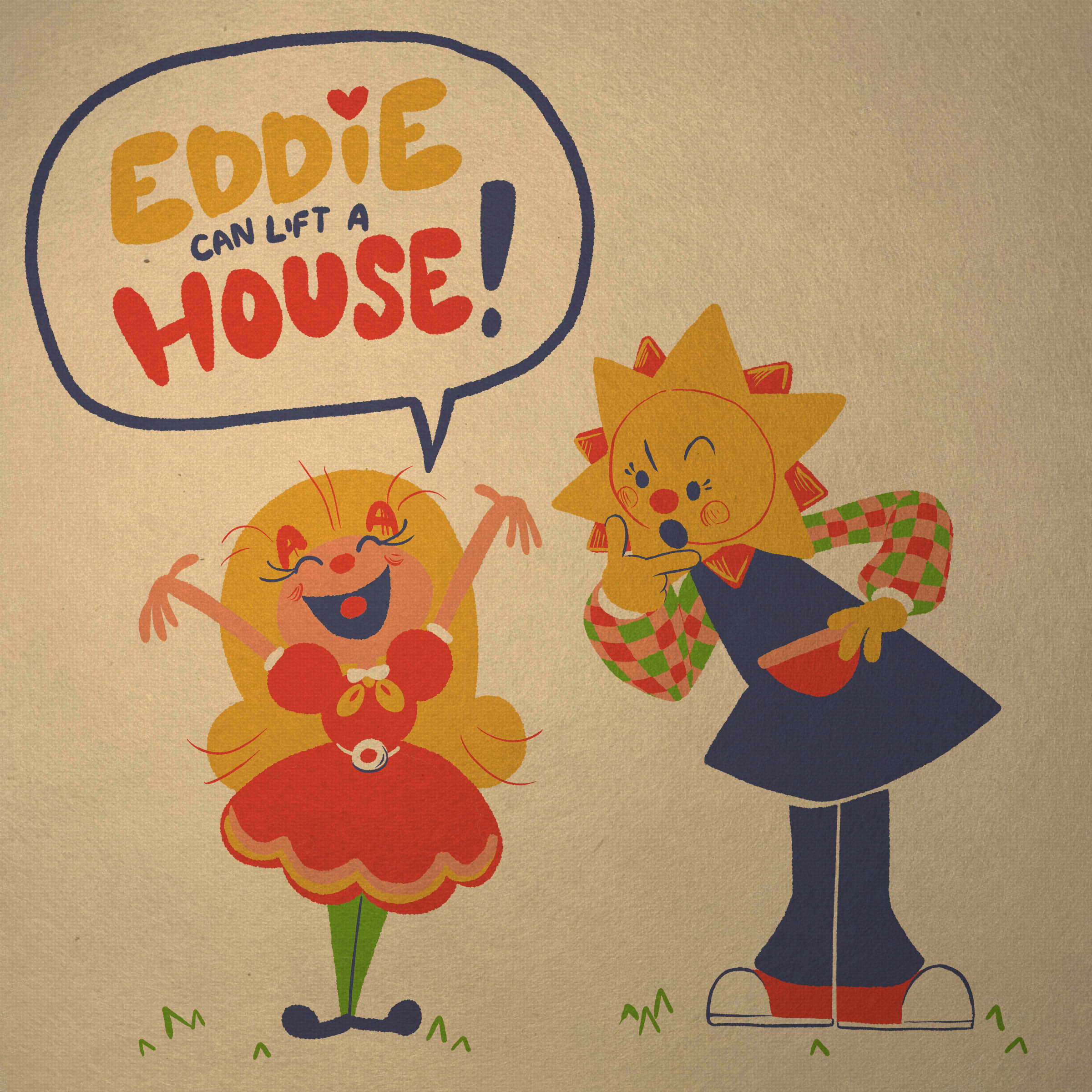 JULIE:(Triumphantly shouting.) EDDIE! CAN! LIFT! A! HOOOUUUSSSEEE!!